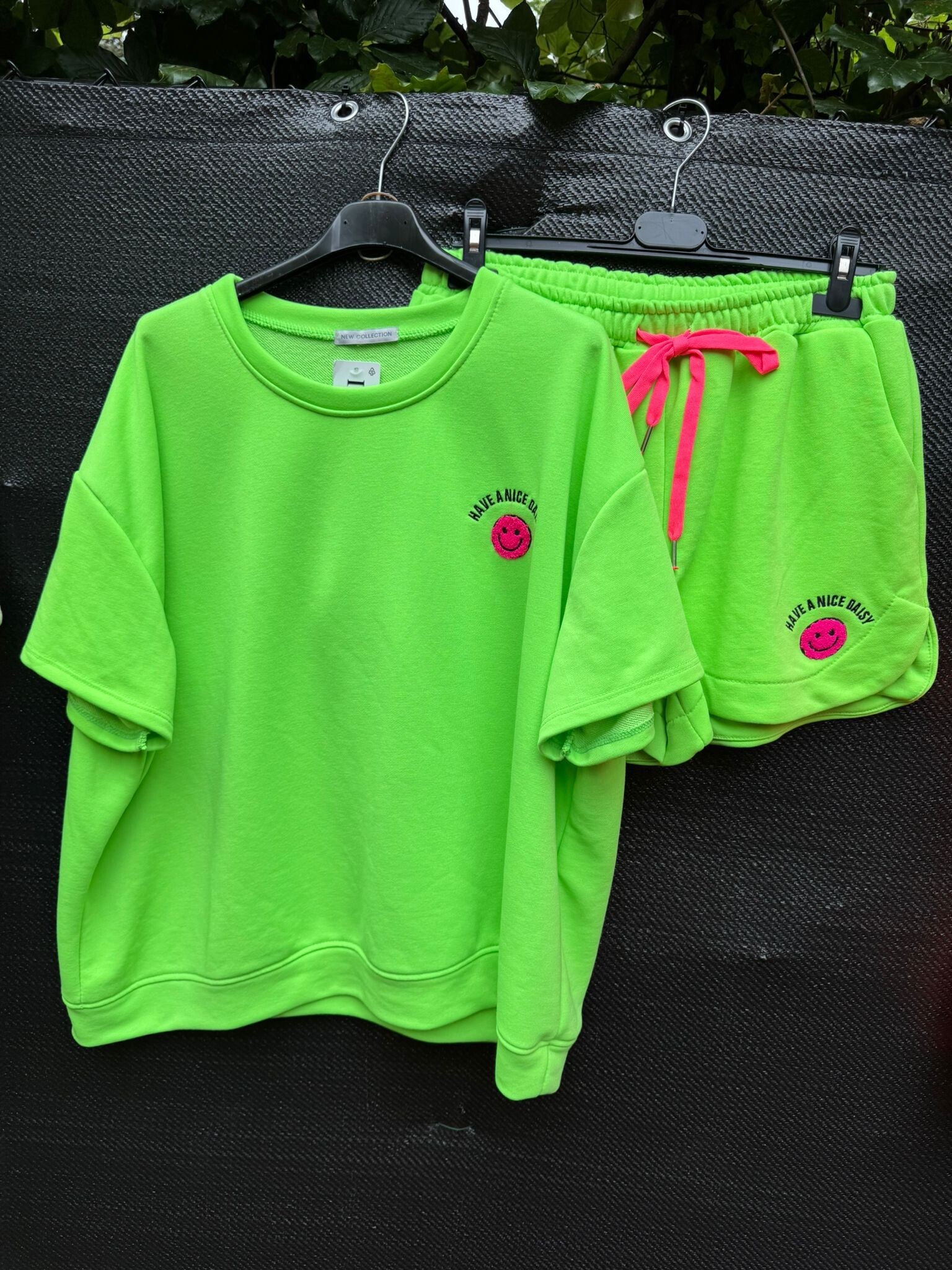 Super toffe neon set in katoen. Ook een hele fijne stof om te dragen. De sets zijn taille unique van maat xs tot xl.