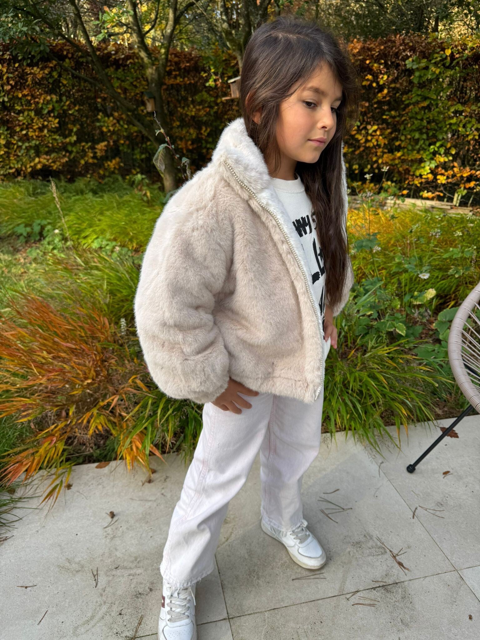 Heerlijk zacht en supper cute! Deze fluffy meisjesjas is een echte winterfavoriet! De jas is gemaakt van heerlijk zacht faux fur materiaal. Dankzij de zachte en heerlijk warme binnenkant blijft je kindje lekker warm tijdens koude dagen. Perfect voor schoolwandelingen en feestelijke momenten.