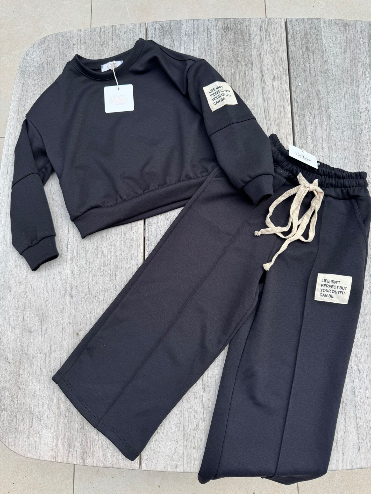 Deze super comfortabele meisjes set is ideaal voor kids die houden van zachte stoffen en een trendy look. De set bestaat uit een soepel vallende sweater en een bijpassende broek met breede pijp en een verstelbare koord.