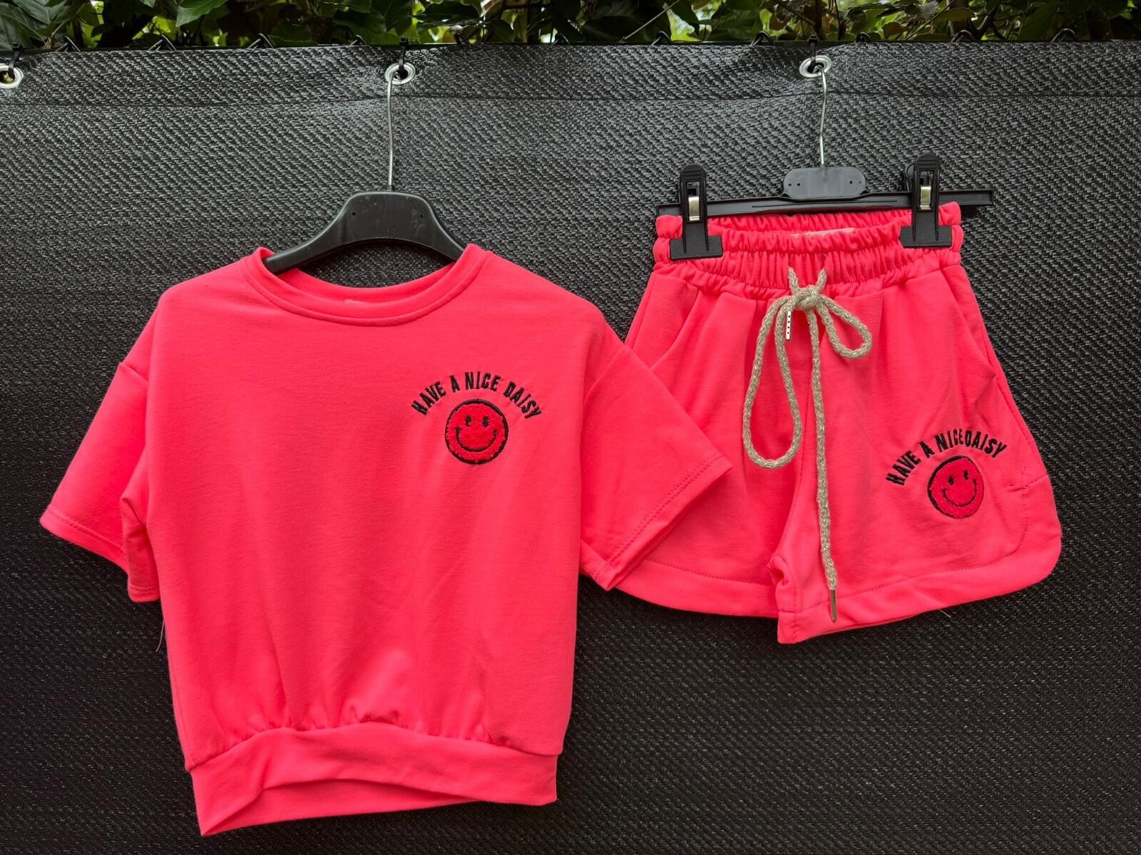 Deze vrolijke meisjes set zorgt gegarandeerd voor een goede mood! Met de smily en de tekst " have a nice day" is dit setje perfect voor meisjes die houden van kleur, fun en comfort. De zachte katoen en tailleband maken het ideaal voor zomerse dagen vol beweging.