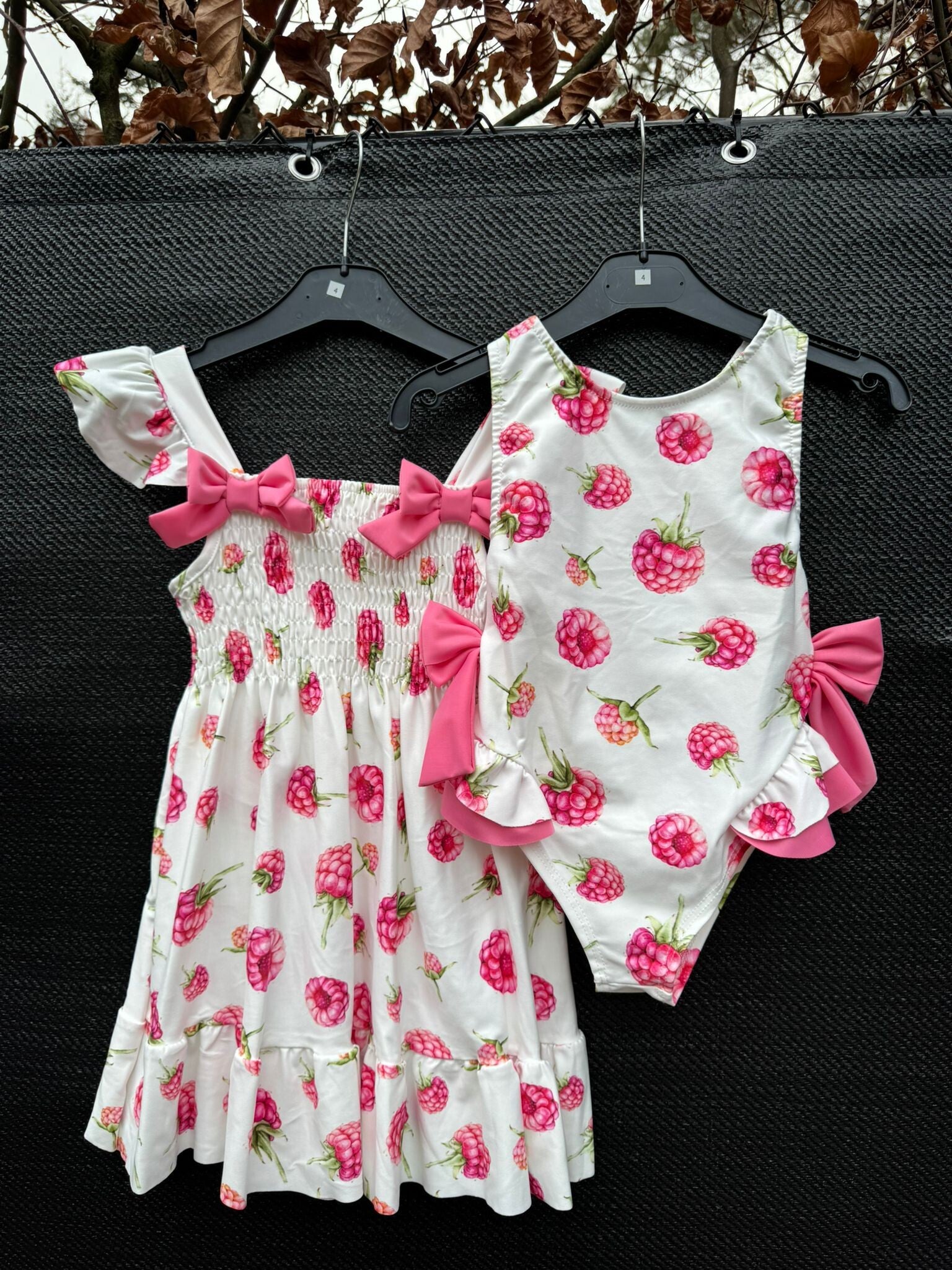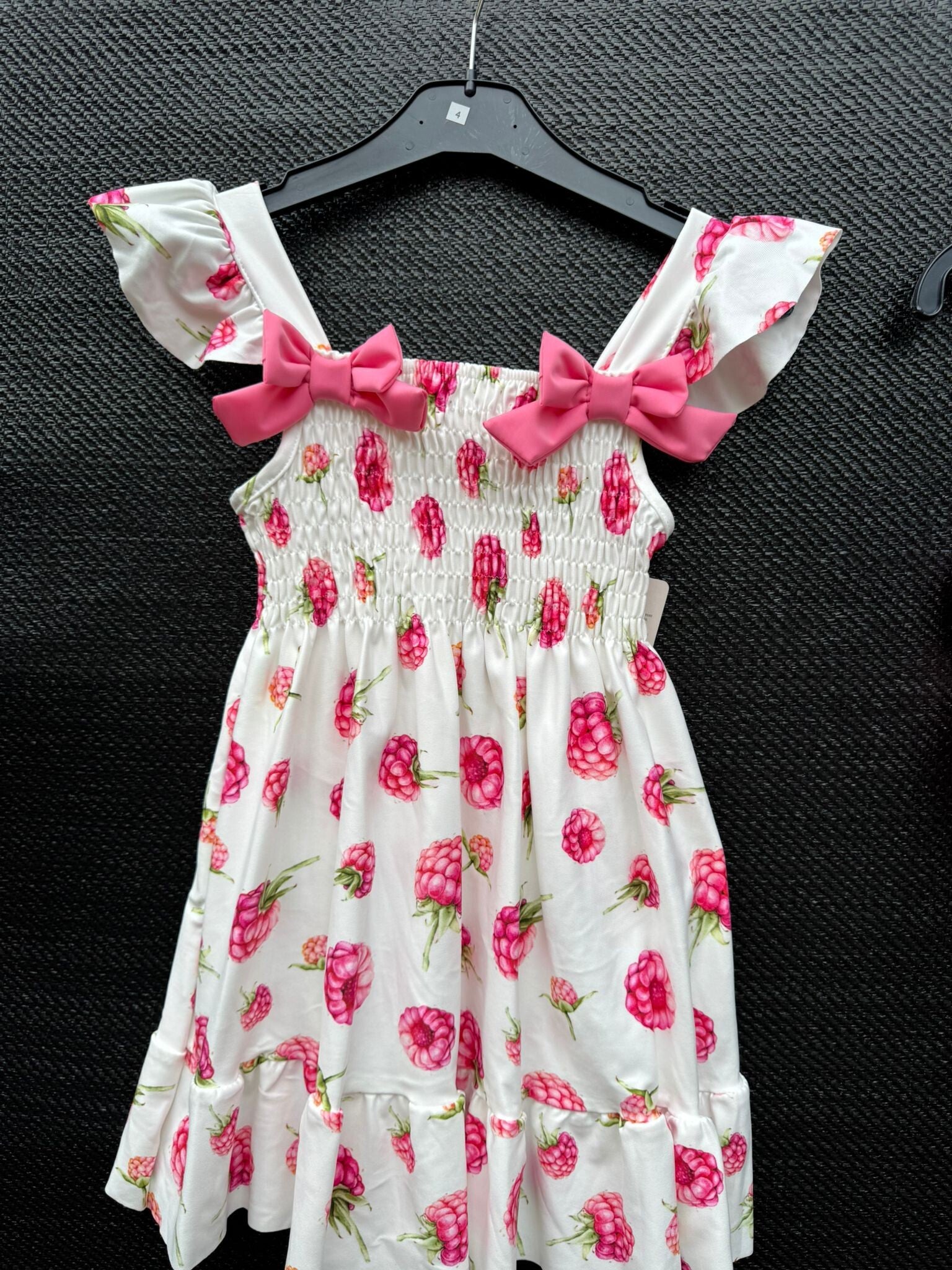 Een vrolijk en luchtig jurkje,ideaal voor zomerse dagen. Tof om te combineren met de badpakjes uit dezelfde stof. Het model heeft breede schouderbandjes met strikdetail en een comfortabele elastische taille voor een mooie pasvorm.